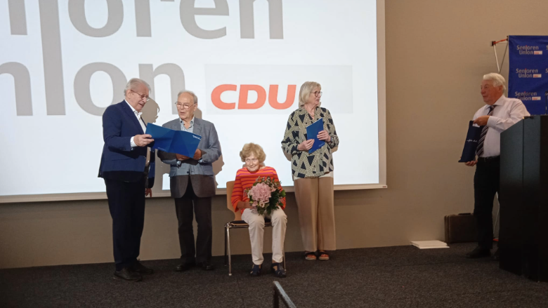 Für 30 Jahre aktive Arbeit für die Senioren-Union Deutschlands wurde am Montag, dem 16.September 2024 der Mitbegründer und bis zu diesem Jahr auch Vorsitzende des Ortsverbandes Malente der Senioren-Union, Edwin Strehler, ausgezeichnet. Der Landesvorsitzende Dieter Holst überreichte ihm diese seltene Auszeichnung auf der Landesversammlung der Senioren-Union in den Holstenhallen in Neumünster.