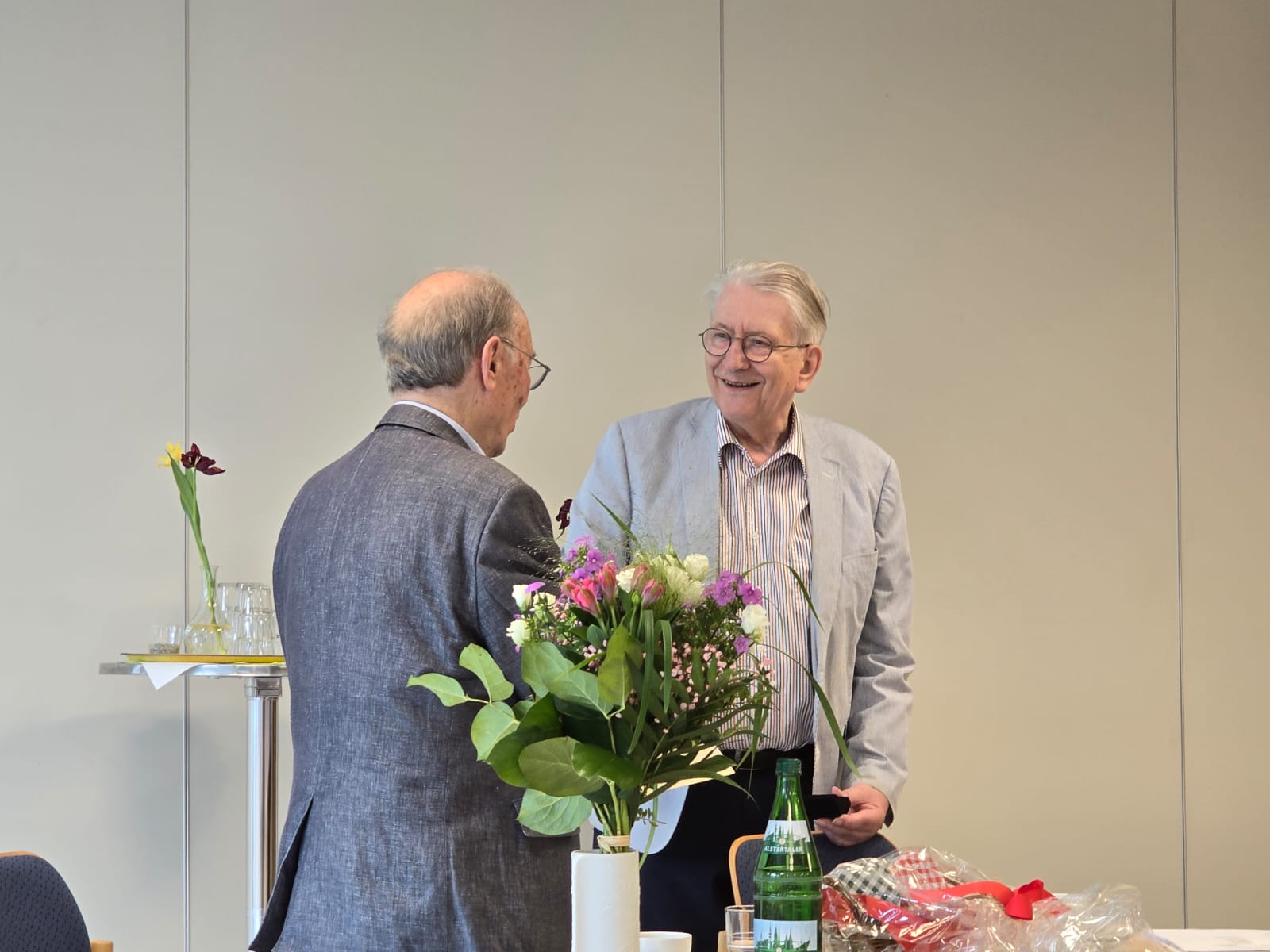 Nach diesem bewegenden Moment genossen wir gemeinsam leckeren Erdbeerkuchen, begleitet von Dankesworten des Vorsitzenden der CDU Malente, Sebastian Zimmer-Abelstedt, der Edwin Strehler mit einem Blumenstrauß ehrte. Herr Strehler teilte dann mit uns seine Erinnerungen an 30 Jahre Senioren-Union Malente, darunter unvergessliche Mehrtagesfahrten, Rapsblütenfahrten und Besuche von Bundes- und Landtag.